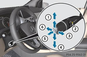 Con la leva del TEMPOMAT vengono comandati il TEMPOMAT o il sistema di assistenza attivo alla regolazione della distanza DISTRONIC e il limitatore di velocità variabile.